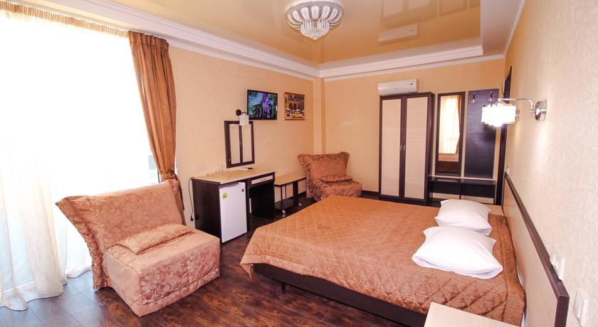 Во всех номера с 1 по 3 этаж: большая площадь, сейф, холодильник, кондиционер, телевизор, фен, балкон, своя душевая комната, комплекты полотенец, халаты, тапочки, банные принадлежности. Цена номера с завтраком.